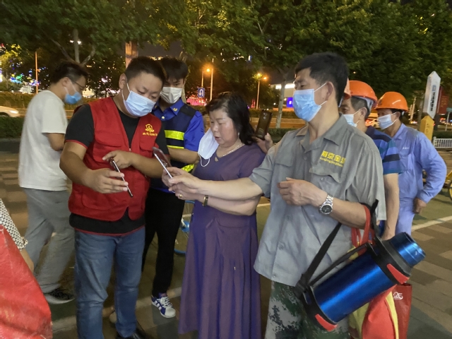 會后,集團迅速組織黨員干部組成志愿者隊伍,聯(lián)系建鄴區(qū)認(rèn)領(lǐng)疫情防控志愿工作,趕赴多個社區(qū)協(xié)助防疫一線的核酸檢測工作。集團志愿者隊伍每組都由集團部室、公司負責(zé)人帶隊,進入工作現(xiàn)場后,他們迅速熟悉掌握工作要求,立即上崗?fù)度胫驹阜?wù)。引導(dǎo)前來進行檢測的市民嚴(yán)守疫情防控要求有序排隊進場,安撫待檢人員相互配合支持,指導(dǎo)幫助登記掃碼加快工作速度,為老人和困難市民提供方便服務(wù)……在他們與其他志愿者的共同努力下,這幾個檢測點都秩序井然,有效推進了檢測速度,減少了市民等待時間。志愿者們把保障核酸檢測有序高效推進作為此時踐行初心使命的擔(dān)當(dāng),忘記了炎熱夏夜忙碌的一身汗水,忘記了蚊蟲繞身不停的叮咬,為筑起群眾生命健康防線獻出了一份力量。