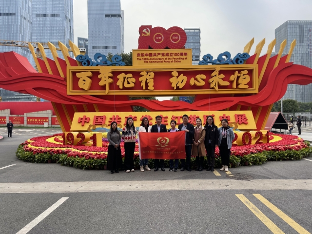 會后,大家集體前往南京國際博覽中心參觀“百年征程 初心永恒——中國共產(chǎn)黨在江蘇歷史展(1921-2021)”,展覽運用圖片圖表、檔案文獻、文物實物、場景模型及新媒體手段,全方位、全過程地展現(xiàn)了中國共產(chǎn)黨的歷史偉業(yè),講述了在黨的領(lǐng)導下,江蘇在百年奮斗中取得的輝煌成就。
