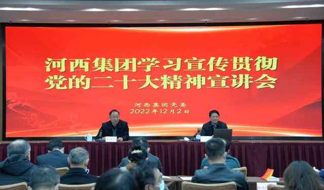 根據(jù)中央和省市委、市國資委黨委部署要求,12月2日下午,河西集團召開學習宣傳貫徹黨的二十大精神宣講會,邀請市委宣講團成員、市委黨校科研處處長高信奇教授做專題宣講,進一步引導集團廣大黨員干部職工全面深入學習宣傳貫徹黨的二十大精神,切實把思想和行動統(tǒng)一到黨的二十大精神上來,更加深刻領悟“兩個確立”的決定性意義,不斷增強“四個意識”、堅定“四個自信”、做到“兩個維護”。會議由集團黨委副書記、董事繆昌根主持。集團領導、全體中層干部及集團下屬各公司黨務工作者參加會議。