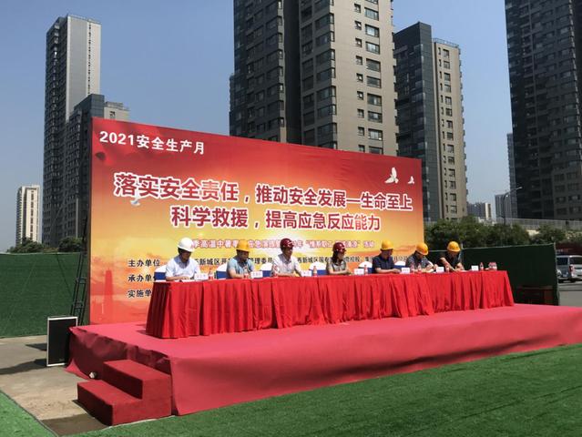 根據(jù)2021年“安全生產(chǎn)月”活動計劃安排,6月22日上午,河西集團(tuán)和河西新城管委會在秦新路道路建設(shè)工程項目部聯(lián)合舉辦夏季高溫中暑應(yīng)急救援演練活動。
