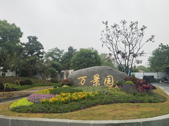 萬(wàn)景園北入口項(xiàng)目將原始花壇改造成弧形整石花壇,常夏石竹、八仙花、女貞球等彩葉花灌木鋪滿在景觀石的四周,形成植物品種豐富、層次分明的小型花境。入口處增設(shè)標(biāo)有“萬(wàn)景園”字樣高達(dá)12米的立牌,高大醒目,與魚(yú)嘴公園、青年文化公園、綠博園形成了統(tǒng)一的濱江風(fēng)光帶入口標(biāo)識(shí)。