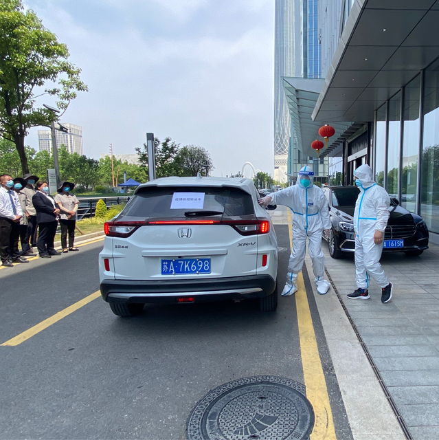 本次演練以“一名體溫異常,來自疫情中風險地區(qū)的訪客”到訪為情景展開演練,模擬了發(fā)現(xiàn)體溫異常、立即報告、啟動應急預案、開展應急處置、穿戴防護服、轉運隔離、現(xiàn)場消殺等處置步驟及措施,演練過程嚴肅、認真、有序。