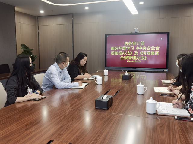 為更好地履行合規(guī)管理職能、提升集團整體合規(guī)管理水平,近日,河西集團法務審計部全體人員共同學習《中央企業(yè)合規(guī)管理辦法》(以下簡稱《辦法》,該《辦法》于2022年8月23日公布,并于2022年10月1日起施行)。