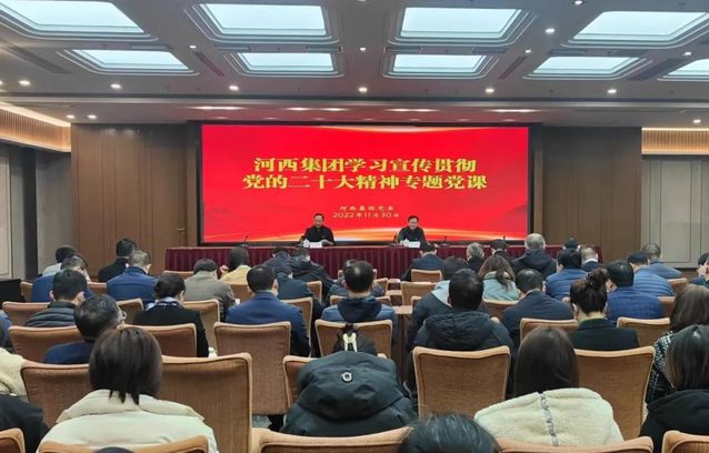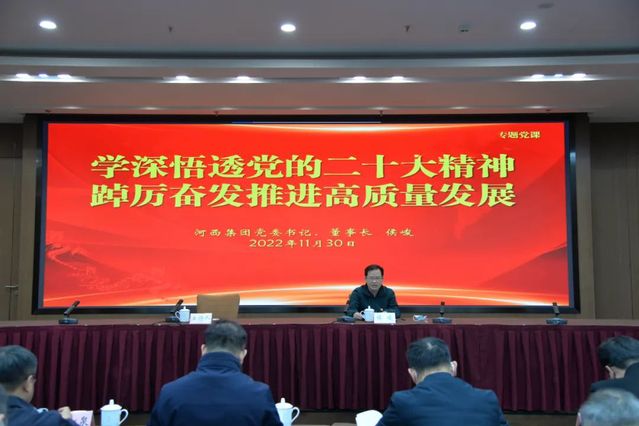 11月30日下午,河西集團(tuán)黨委書記、董事長(zhǎng)侯峻圍繞深入學(xué)習(xí)宣傳貫徹黨的二十大精神,以“學(xué)深悟透黨的二十大精神 踔厲奮發(fā)推進(jìn)高質(zhì)量發(fā)展”為題講授專題黨課?;顒?dòng)由集團(tuán)黨委副書記、董事繆昌根主持。集團(tuán)黨委委員、全體中層以上干部、集團(tuán)下屬各公司黨務(wù)工作者及黨員發(fā)展對(duì)象現(xiàn)場(chǎng)聆聽(tīng)黨課。